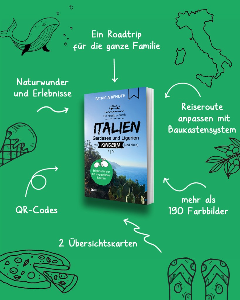 Du planst eine Reise durch Italien und möchtest gerne einen persönlichen Reiseführer haben? Einen, der nicht belanglose Tipps aneinanderreiht, sondern echte Erfahrungen teilt? Du willst nicht mit Informationen überflutet werden, sondern vor allem Natur, Geschichte und Kultur hautnah erleben? Glücksorte und Glücksmomente finden? Dann bist du hier genau richtig! Ich bin Patricia Renoth, und ich nehme dich mit auf eine fantastische Reise durch Italien. Gemeinsam mit unserer 11-jährigen Tochter haben mein Mann und ich die Gardaseeregion und Ligurien bereist.