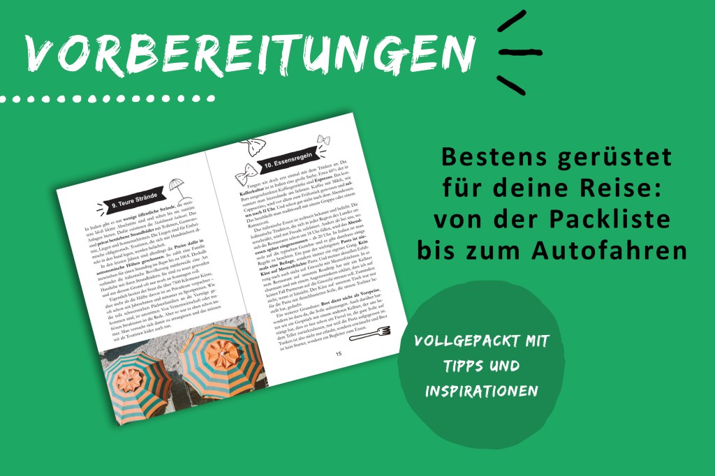 Dich erwartet ein Mix aus unterhaltsamem Reisebericht und informativem Reiseführer: ein Erlebnisführer. Es geht darum, in 1-3 Wochen die Highlights der Regionen kennenzulernen und, wann immer möglich, den Touristenmassen zu entfliehen. Du willst das authentische Italien entdecken: von dramatischen Küstenlandschaften, über charmante Dörfer, bis hin zu den besten Badespots? Du möchtest die leckerste Pizza probieren und den Gardasee von einer neuen Seite erleben? Lass uns gemeinsam herausfinden, was Dolce Vita bedeutet!